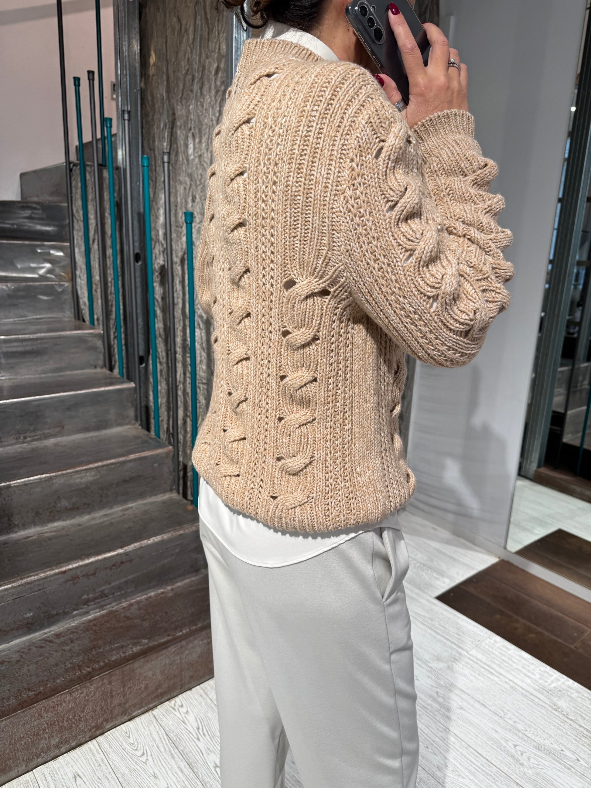 Maglia Traforata Trecce Verticali