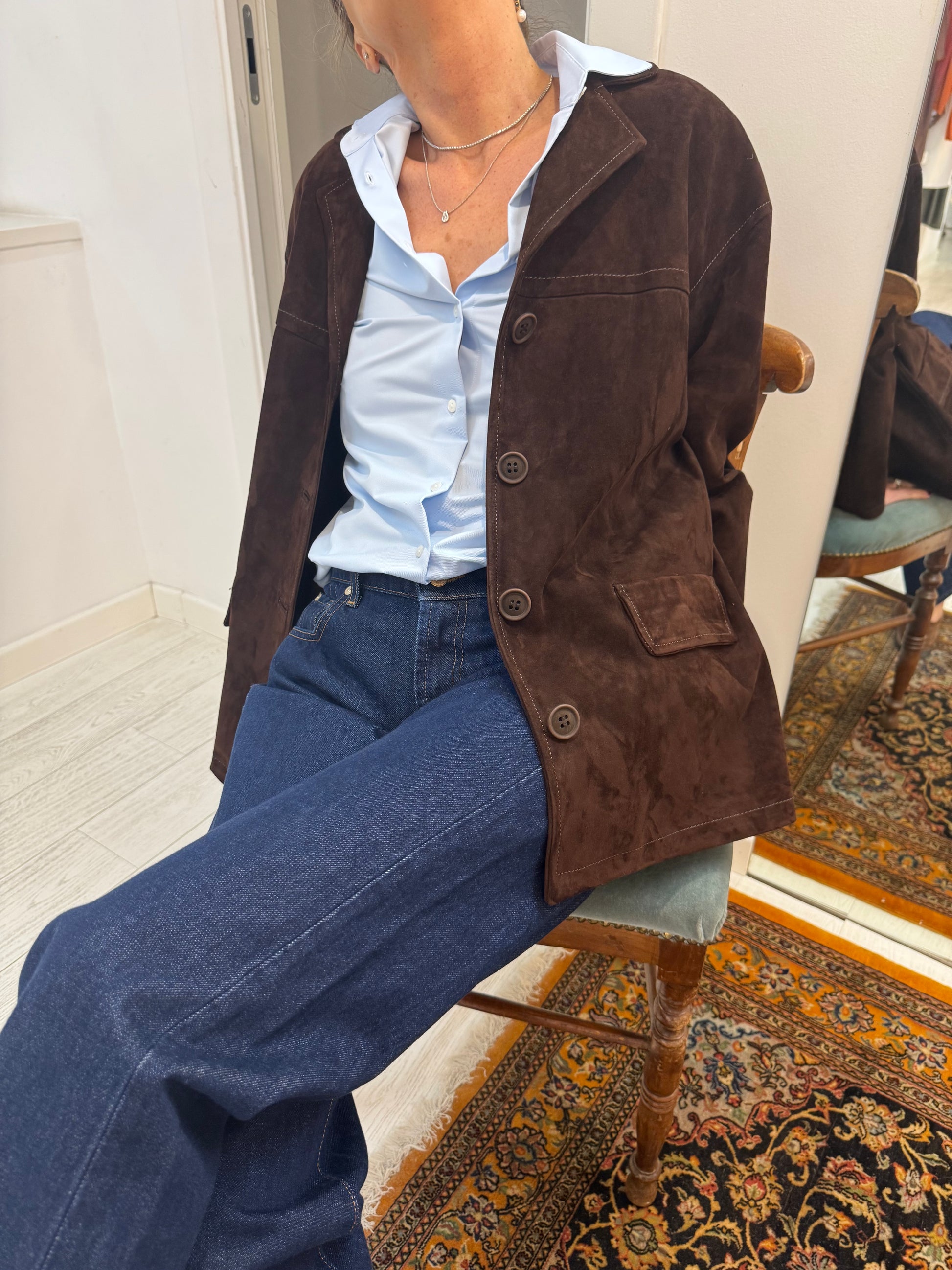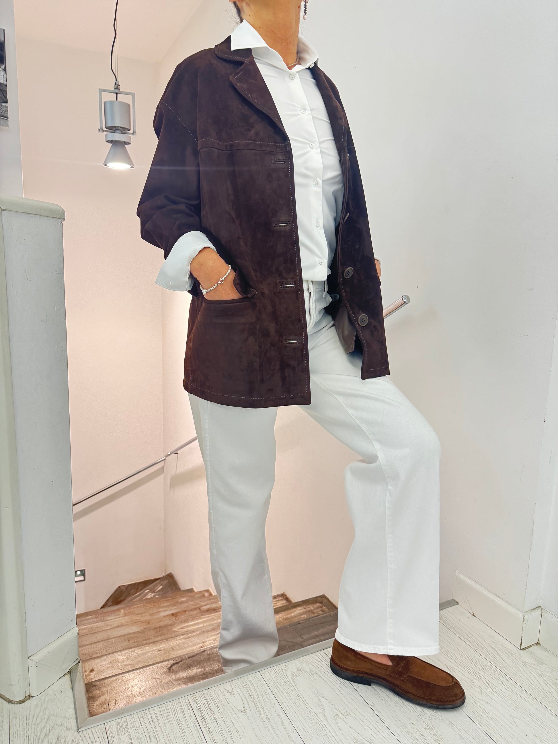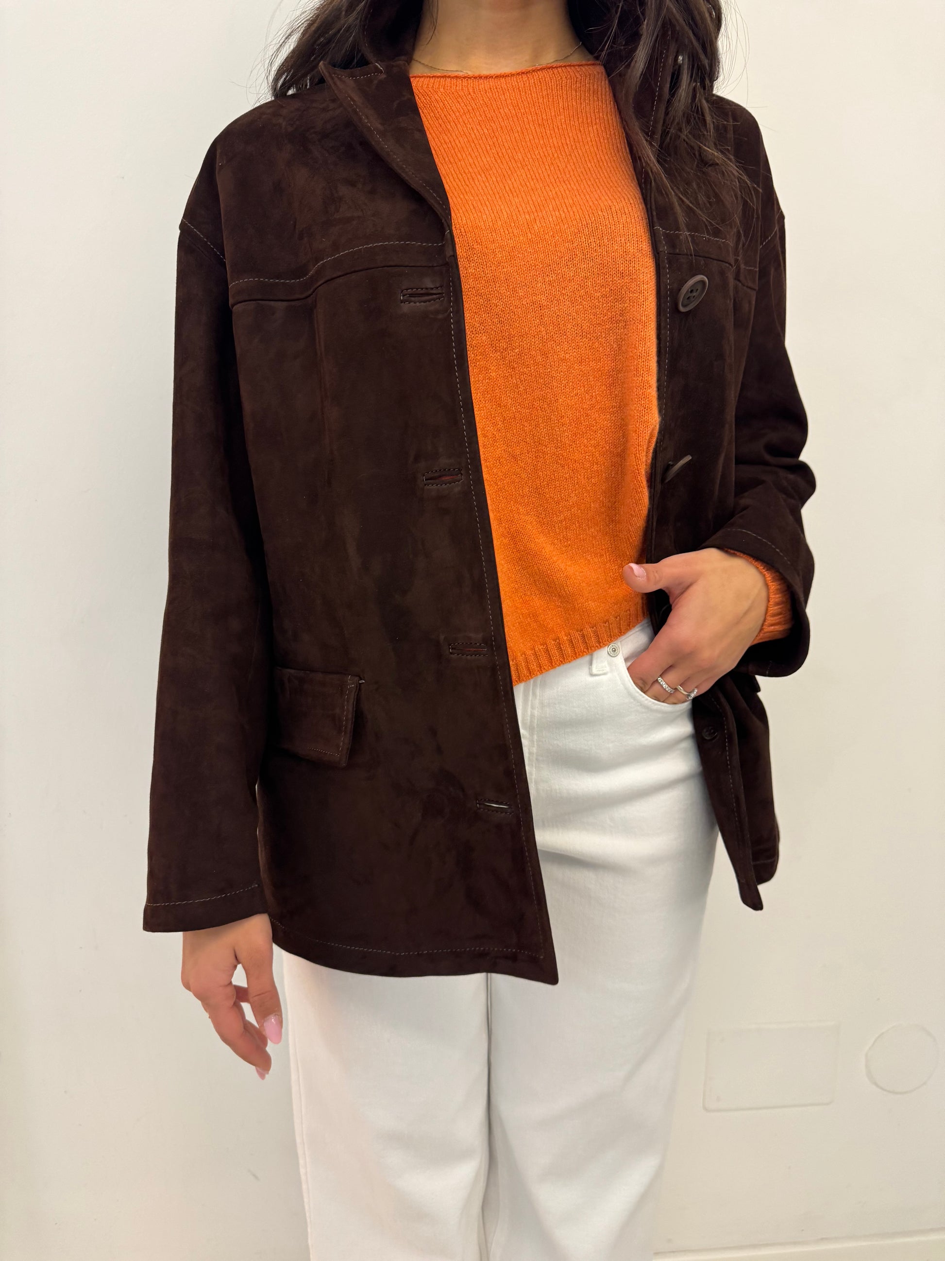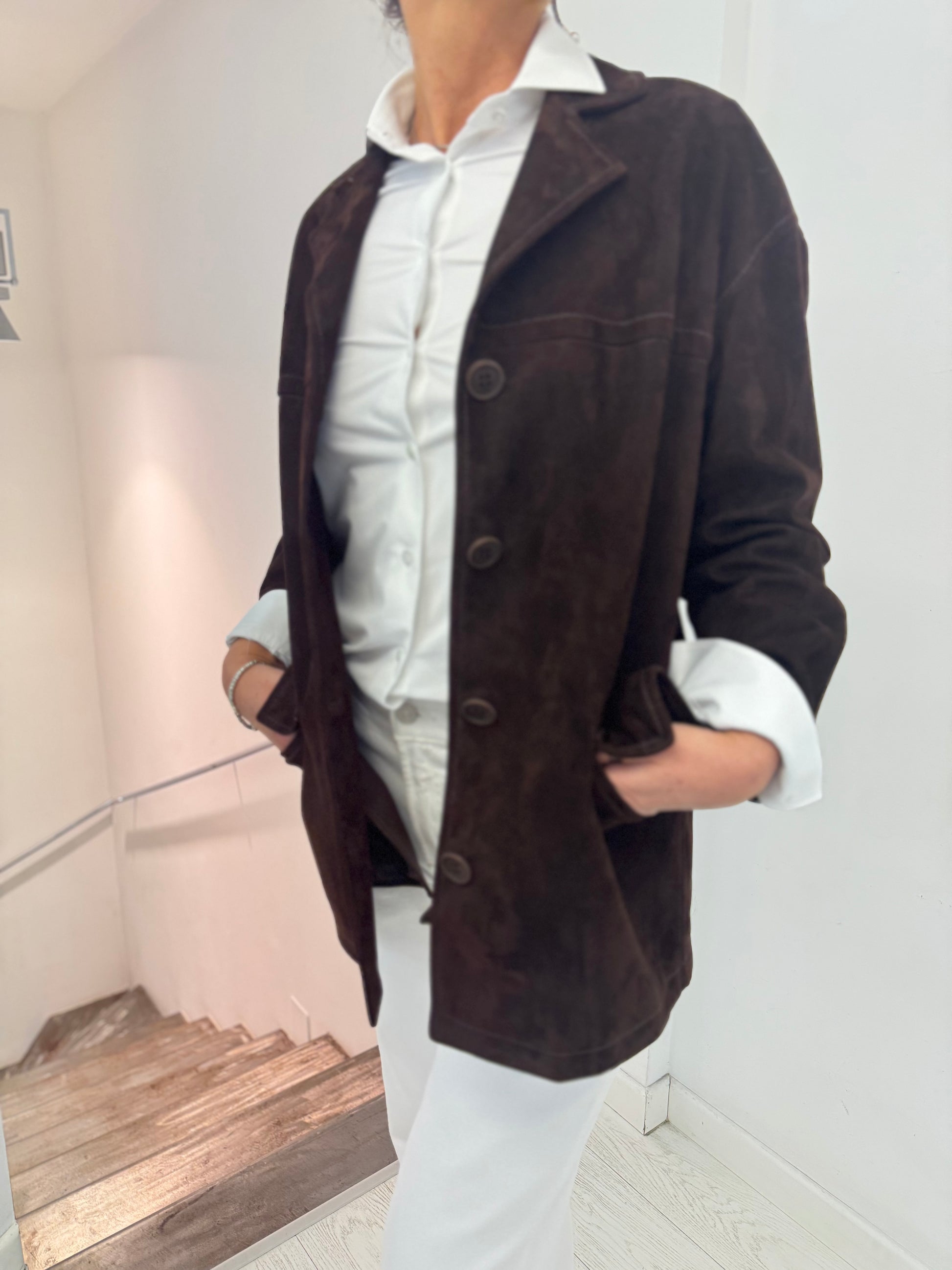 Giacca Over Pelle Scamosciata